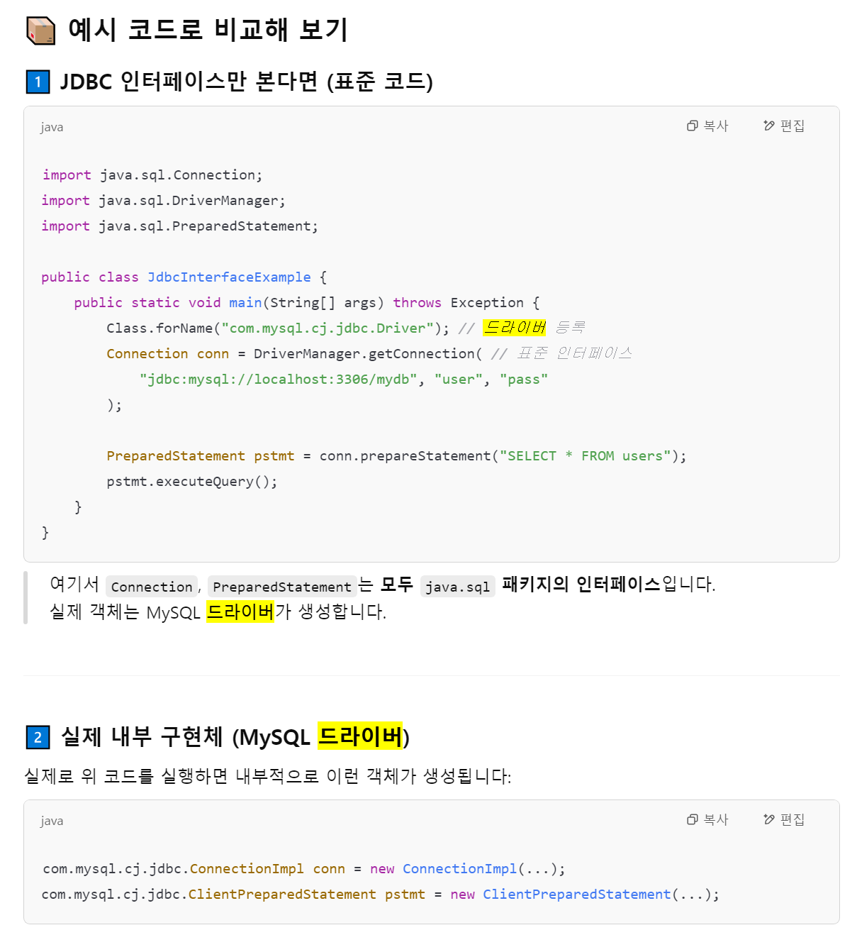 우리의 멋진 자바는 인터페이스를 만들어서 어떤 드라이버를 끼우냐에 따라 다른 DB와 통신할 수 있게 만들었다.